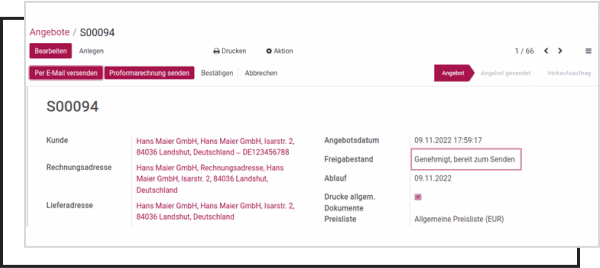 Sending the quotation is locked until approval is granted