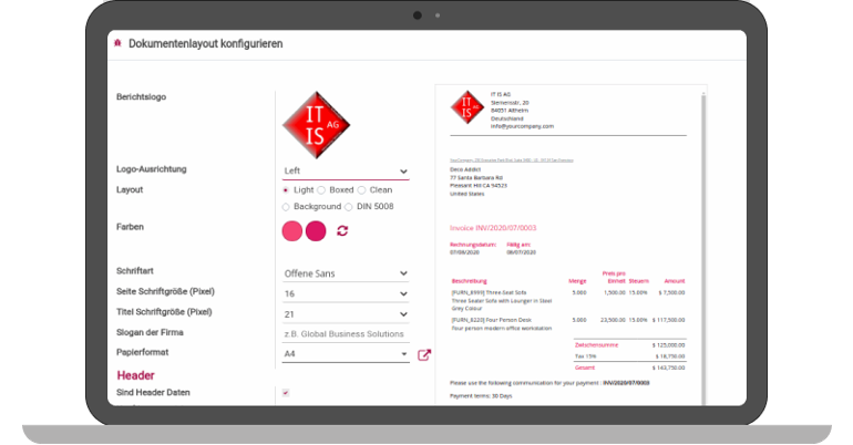In ITISeasy.business, anyone can easily and quickly customize their PDF reports – right through the CI interface, without any programming skills!