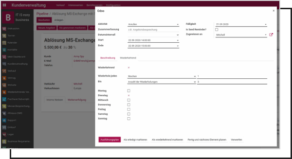 While creating any activity in ITISeasy.business, simply choose "Recurring" and set: